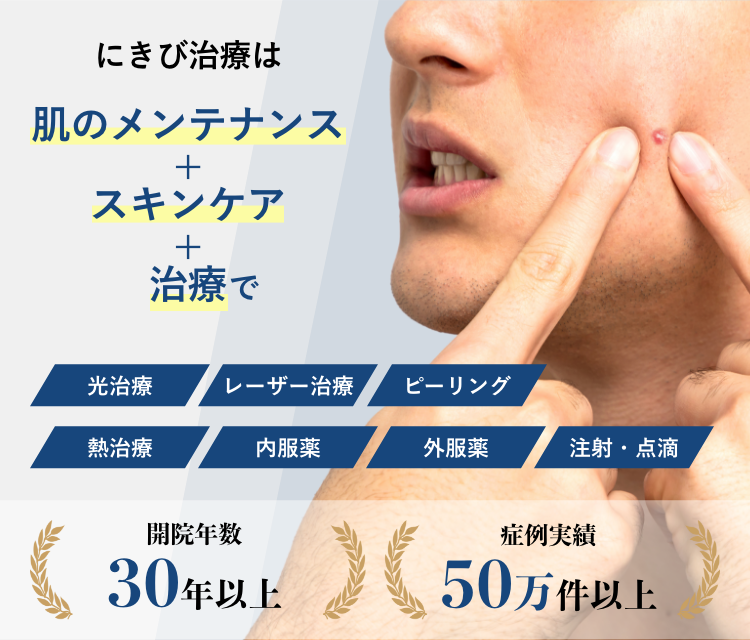 にきびでも20代以降に出てくる、いわゆる難治性の大人にきびは、様々な方法を組み合わせて治療を行います。