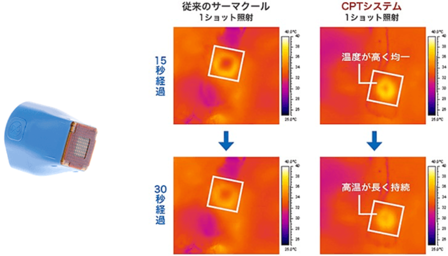 照射チップが従来のサーマクールCPTの照射面3.0cm2に比べて、サーマクールFLXは4.0cm2と大きくなったため、治療時間が25%も短縮されました。